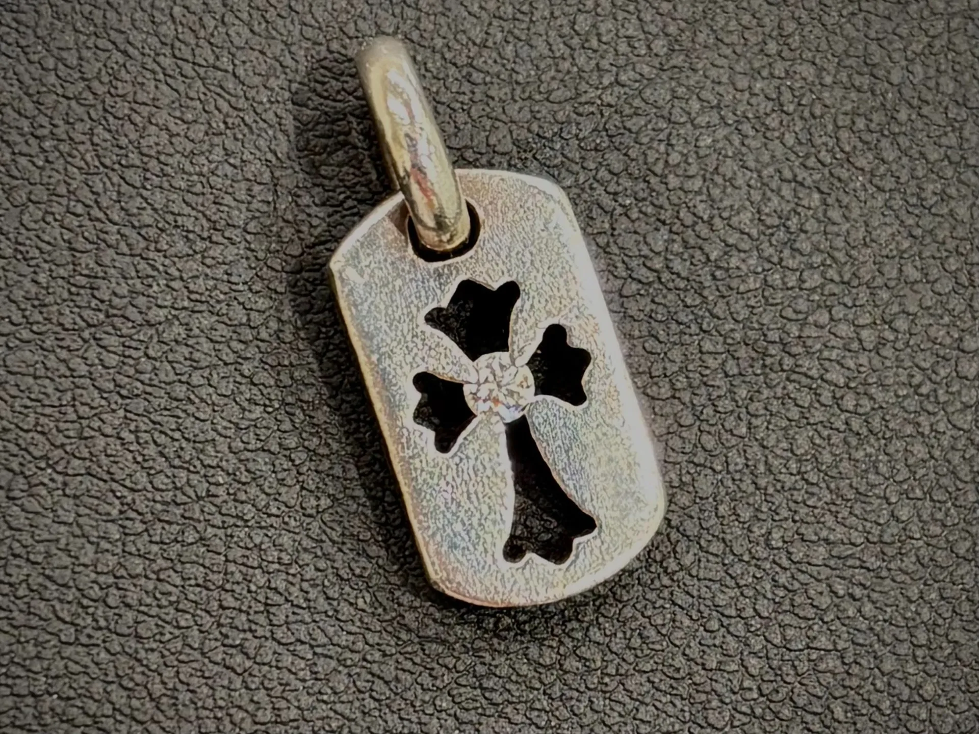 クロムハーツといえば、重厚感のあるシルバーと独自の世界観で、年齢・性別を問わず支持され続けているブランドです。中でも今回お持ち込みいただいたタイニーカットアウトクロスは、クロスモチーフをくり抜いた繊細なデザインが特徴で、さりげない存在感が魅力のペンダントトップです。中央にセットされたダイヤモンドが上品な輝きを放ち、クロムハーツらしい力強さと洗練さを兼ね備えた人気モデルとなっています。
