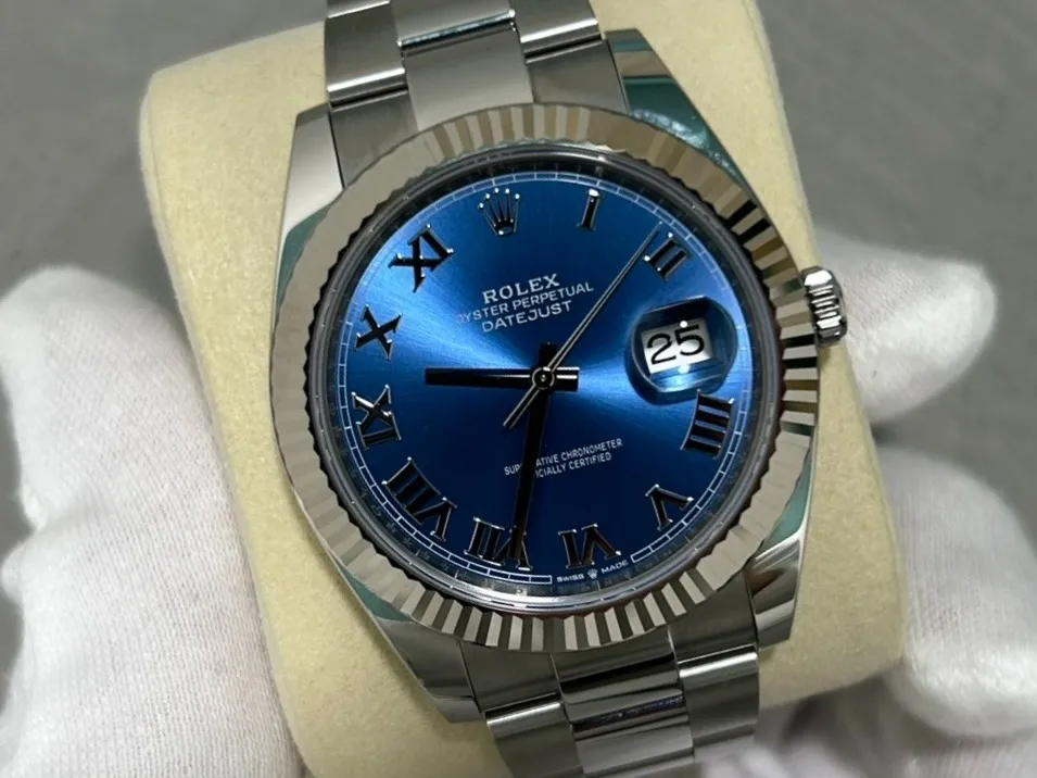 今回お持ち込みいただいたのは、ロレックス デイトジャスト 126334 アズーロブルー文字盤。洗練されたデザインと上品な存在感を兼ね備えた、まさに“大人の余裕”を感じさせる一本です。
